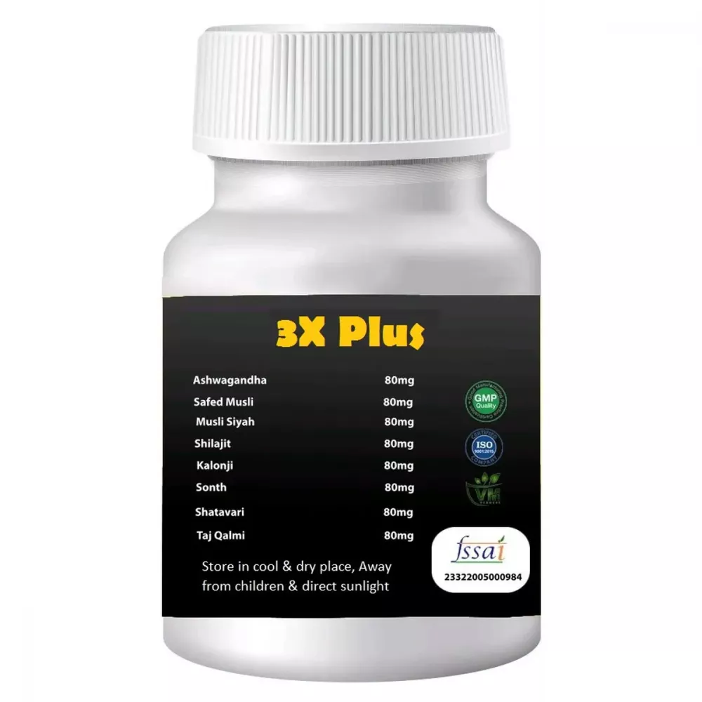 Vedmeds 3X Plus is an Ayurvedic formulation designed to promote male health, particularly focusing on vigour, vitality, and endurance. It combines several powerful, traditional herbs that are well-regarded in Ayurvedic medicine for their adaptogenic, aphrodisiac, and tonic properties.